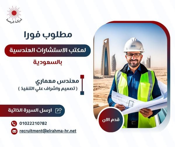 Uncategorized… by Amro on February 18, 2026 add comment 8 views share 0 [Follow us on: Telegram Group https://t.me/+ijK1ZPV96BwxMDM0 Facebook Page https://www.facebook.com/profile.php?id=61583093228751 facebookTwitterPinterestRedditEmailfacebookTwitterPinterestRedditEmail previous article () جمعية السرطان السعودية تعلن عن وظيفة في مجال هندسة الحاسب وتقنية المعلوماتأعل… next article شاغر وظيفي لاحد اكبر شركات صيانة السيارات بالسعودية للعمل لدي فرعها الاداري بمصر… The author Amro you might also like () عاجل | تدريب وتوظيف برواتب تبدأ من (6,500): مكافئة شهرية 3000 رواتب مجزية تأم… … Error #CSCEC#International is looking for the following position to join us. Job Requi… () وظائف (الشركة الوطنية لخدمات كفاءة الطاقة – ترشيد) لحملة البكالوريوس فأعلى: ا… Leave a Response Cancel replyCommentName Email Save my name, email, and website in this browser for the next time I comment.