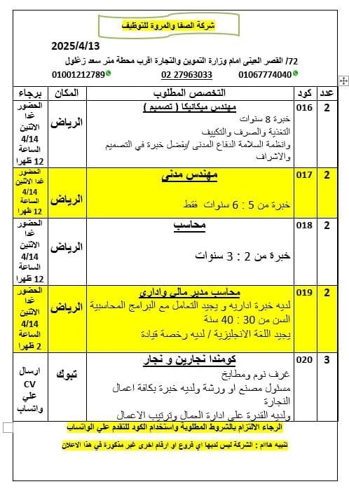 Uncategorized… by Amro on March 12, 2026 add comment 9 views share 0 [Follow us on: Telegram Group https://t.me/+ijK1ZPV96BwxMDM0 Facebook Page https://www.facebook.com/profile.php?id=61583093228751 facebookTwitterPinterestRedditEmailfacebookTwitterPinterestRedditEmail previous article () وظائف هندسية شاغرة في شركة سويدو كيكو الشرق الاوسط مهندس ميكانيكيمكان العمل :… next article شاغر وظيفي لإحدي شركات المقاولات بالمملكة العربية السعودية – جدة :: “مهندسين كهر… The author Amro you might also like مطلوب #للعمل بكبري شركات #المياه #بالسعوديه#مدير #صيانه #خطوط #انتاجالشروط :• خب… شاغر وظيفي لإحدي شركات المقاولات بالمملكة العربية السعودية – جدة :: “مهندسين كهر… We Are Hiring – Senior Electrical & Mechanical Engineers We are looking for… شاغر وظيفي لاحد اكبر شركات الكسارات بالمملكة العربية السعودية – ينبع :: “مراقب ا… تعلن شركة EGY TRADE عن حاجتها إلى Sales Engineers و Sales Representatives.-Junio… Leave a Response Cancel replyCommentName Email Save my name, email, and website in this browser for the next time I comment.