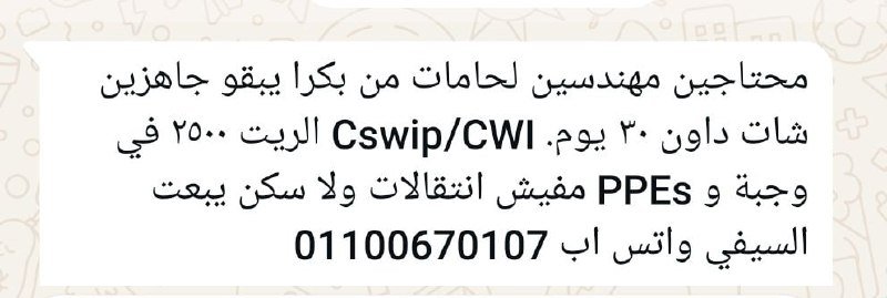 Uncategorized… by Amro on March 23, 2026 add comment 3 views share 0 [Follow us on: Telegram Group https://t.me/+ijK1ZPV96BwxMDM0 Facebook Page https://www.facebook.com/profile.php?id=61583093228751 facebookTwitterPinterestRedditEmailfacebookTwitterPinterestRedditEmail previous article محتاجين 12 سائق شاحنة معاه رخصة قيادة سعودية (نقل ثقيل) للسفر لشركة نقليات بالسع… next article () تدريب وتوظيف في (المنشآت الصحية): التخصصات (الكهربائية, الميكانيكية، الكيميائ… The author Amro you might also like () تدريب وتوظيف في (المنشآت الصحية): التخصصات (الكهربائية, الميكانيكية، الكيميائ… Error () عاجل | جدارات تعلن عن أكثر من 28 ألف وظيفة شاغرة للجنسين في مختلف مناطق الممل… شاغر وظيفي لاحد مطاعم الفاست فوود بالمملكة العربية السعودية – أبها :: “شيف وجبات… Position: Sales EngineerLocation: AlexandriaEmployment Type: Full-timeJob Descri… Leave a Response Cancel replyCommentName Email Save my name, email, and website in this browser for the next time I comment.